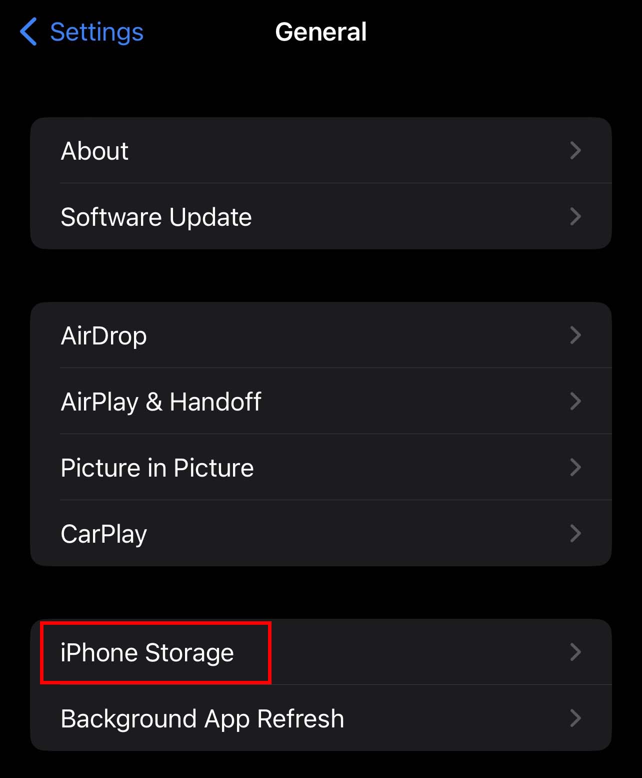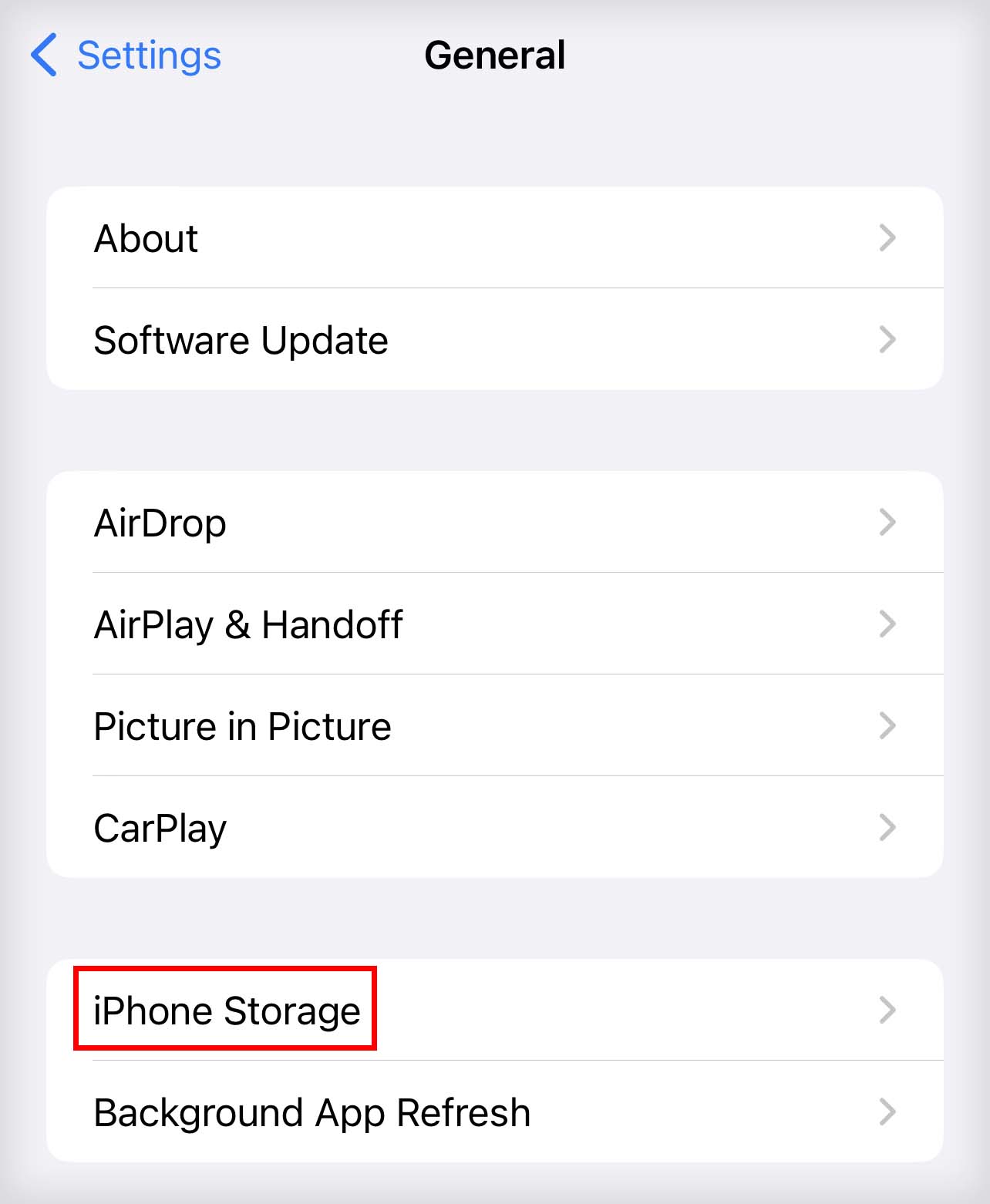 Abra Configurações. Vá para Geral > Armazenamento do iPhone.