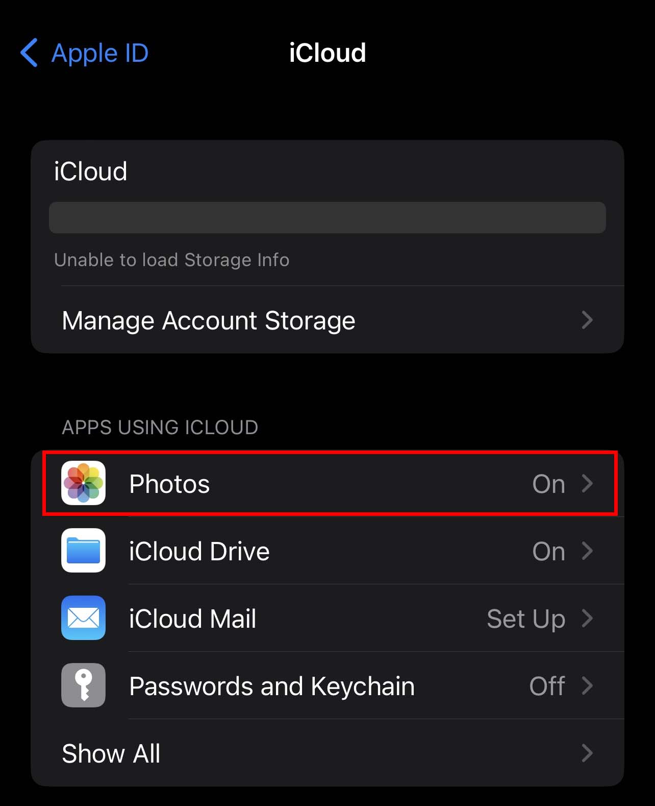 Selecione iCloud e toque em Fotos.