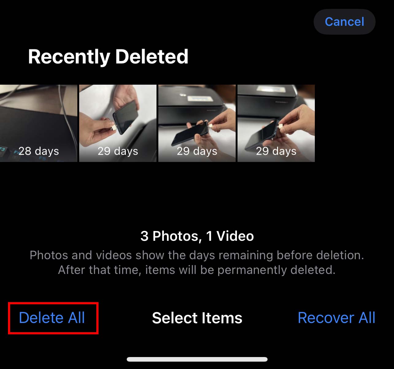 Certifique-se de remover o vídeo de Recentemente excluídos também.