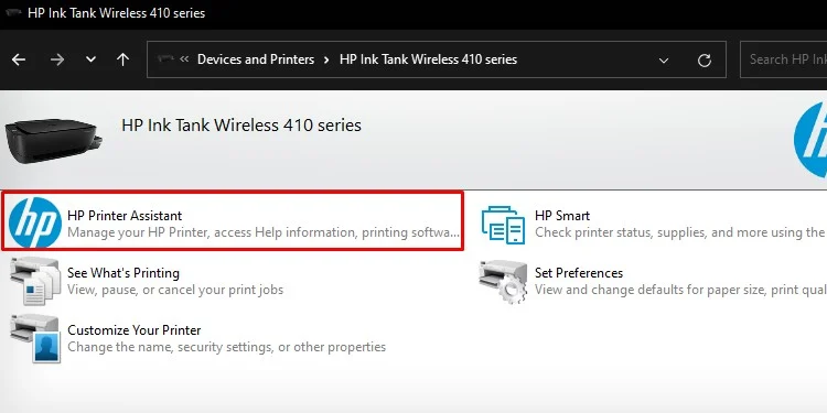 Inicie esta ferramenta (Assistente de impressora HP.)