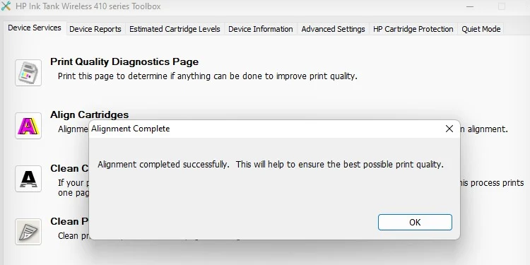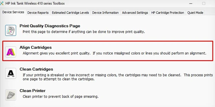 Esse desalinhamento às vezes pode ser o culpado por trás das linhas ausentes em sua impressora. Você pode executar o ciclo de alinhamento do cabeçote de impressão para trazê-lo de volta à sua posição original e ver se isso resolve o problema.