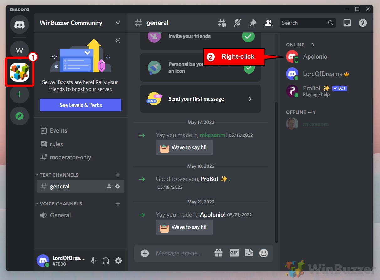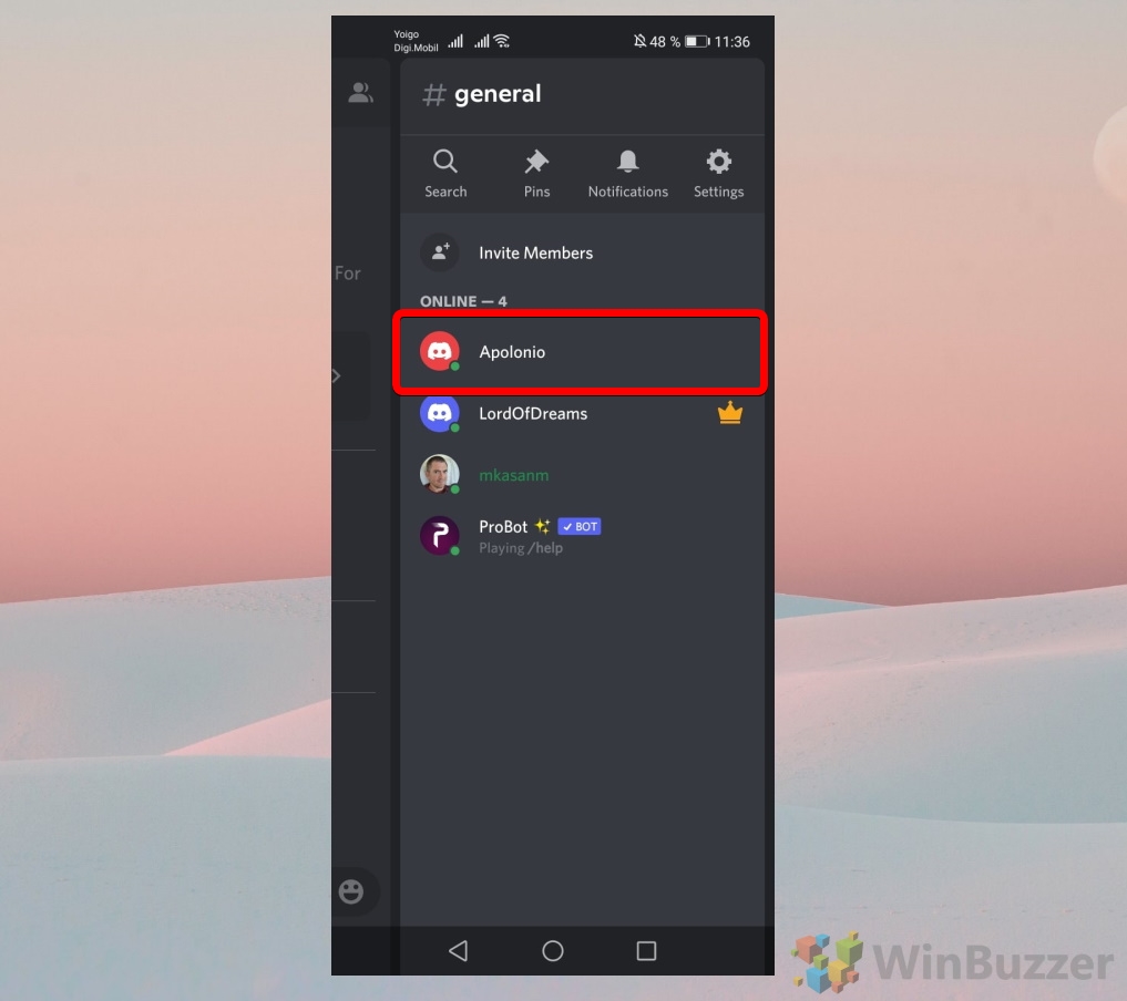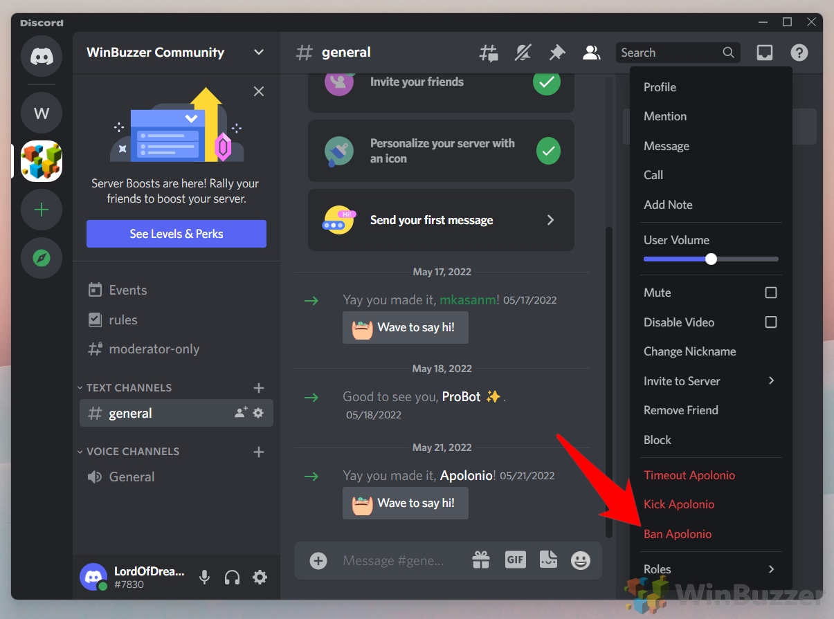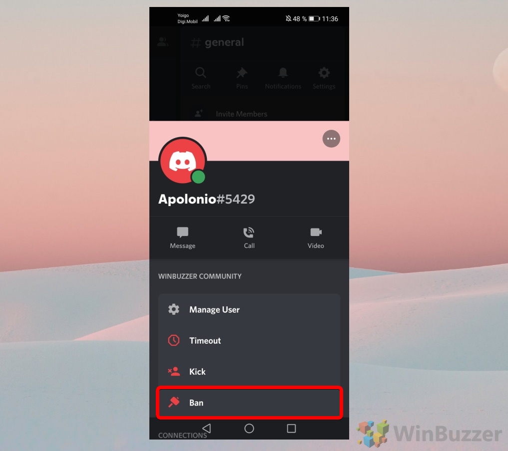 Toque no usuário que você deseja para banir do seu servidor Discord