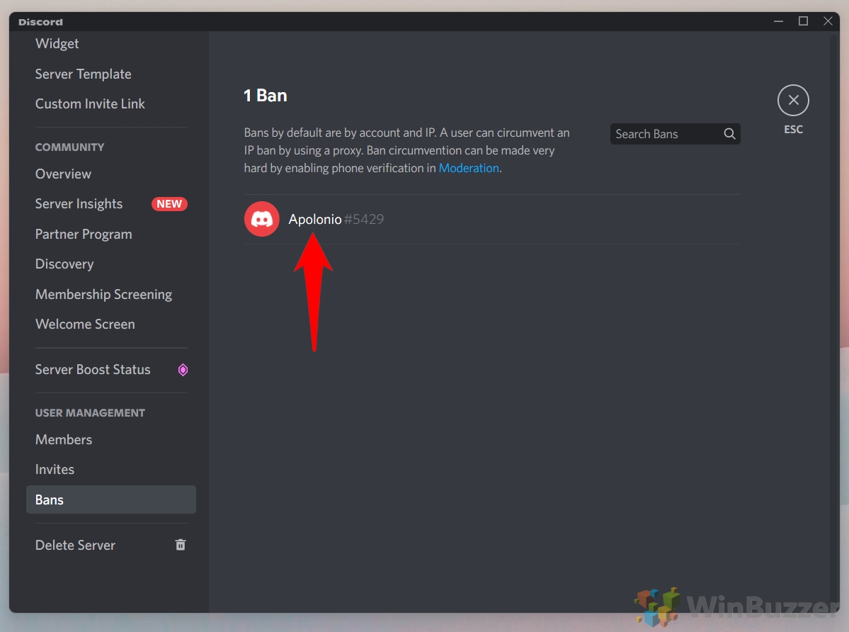 Como remover o banimento de alguém de um servidor Discord (PC)