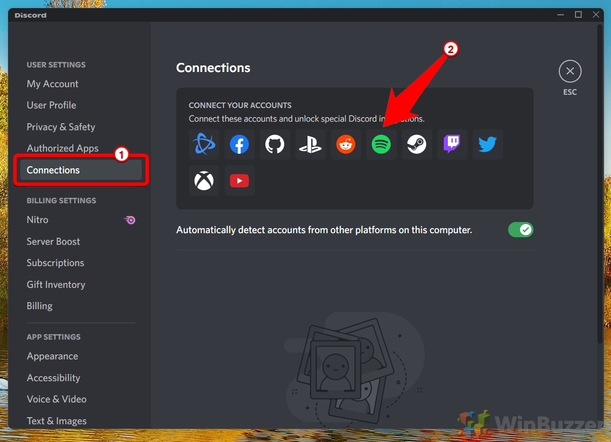 Você verá uma lista de outros aplicativos que também pode conectar ao Discord, como YouTube, Twitch, Steam e mais.
