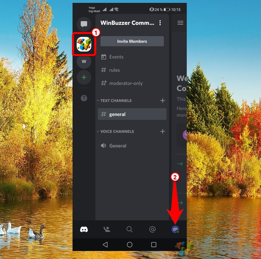 Selecione um servidor e toque em sua foto de perfil no canto inferior direito