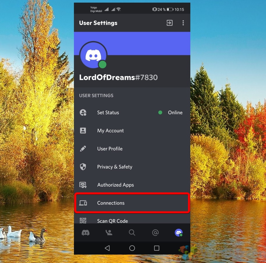 As etapas a seguir mostram como adicionar o Spotify ao Discord em um dispositivo móvel usando Android ou iOS.