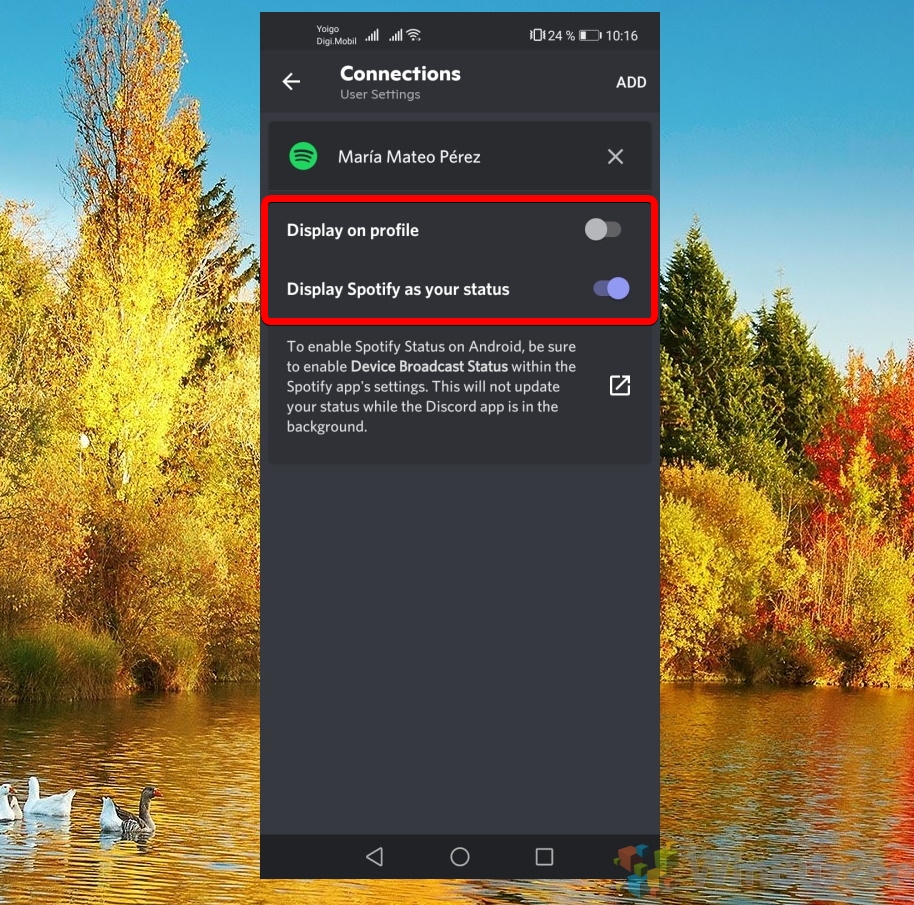 Dependendo de sua escolha, o Spotify mostrará seu status no Discord