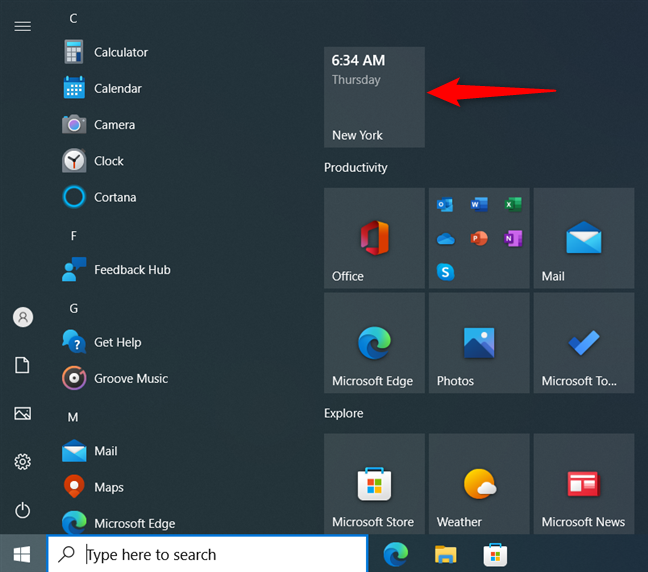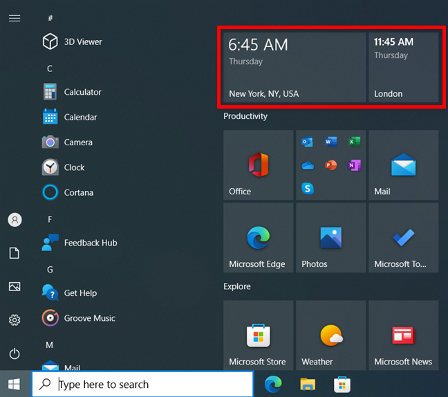 DICA: Se você achar os atalhos de relógio do Menu Iniciar decepcionantes e precisar de algo mais rápido, lembre-se de que você também pode adicionar relógios à barra de tarefas no Windows 10 e no Windows 11.