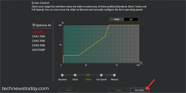 Pressione Esc para sair do janela (o botão Aplicar só funciona se você estiver definindo a velocidade do ventilador manualmente).