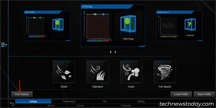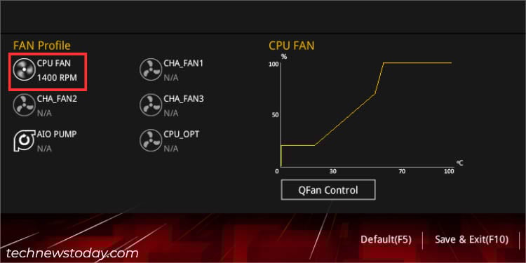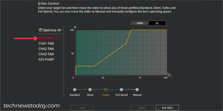 Antes de mais nada, escolha um ventilador que deseja configurar. Para demonstração, selecionarei CPU FAN.