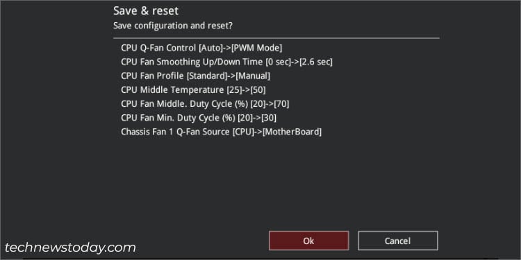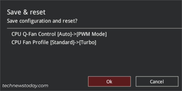 Apenas aplicar a configuração não será suficiente. Para salvar as alterações permanentemente, pressione F10 e o prompt Salvar e redefinir deve aparecer. Clique em Ok e seu computador deve reiniciar.