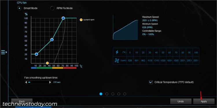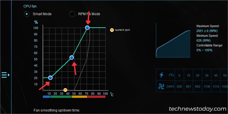 Arraste os pontos/nós para criar uma curva de velocidade do ventilador personalizada com base em sua necessidade. O processo é exatamente o mesmo que no BIOS.