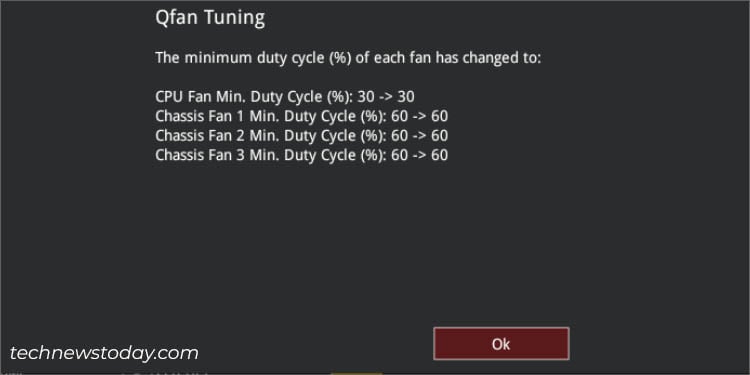 A caixa de diálogo Qfan Tuning deve aparecer. Aqui, aperte o botão Ok .