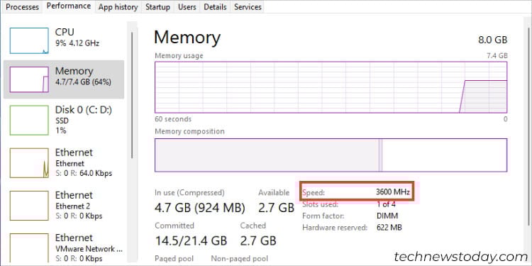 Primeiro, verifique se você está obtendo a velocidade anunciada. Você pode fazer isso no BIOS, no Gerenciador de Tarefas do Windows ou até mesmo usando ferramentas de terceiros, como CPU-Z, HWiNFO, AIDA64, etc.