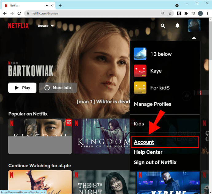 Abra Netflix no seu navegador.Faça login na sua conta.Selecione o perfil você deseja usar.Vá para o ícone de perfil no canto superior direito do navegador.