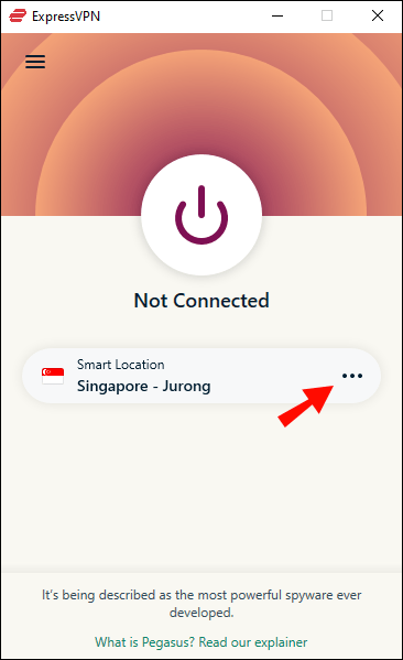 Inicie o aplicativo ExpressVPN.Clique nos três pontos ao lado da guia”Local selecionado”.
