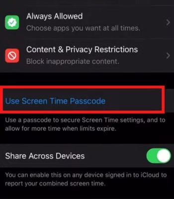 Se o tempo de uso não estiver funcionando no dispositivo do seu filho, você pode definir uma senha de tempo de uso. Seus filhos podem ter desativado o limite de tempo de tela manualmente. Ou, eles podem ter conhecido a senha, então, se você duvidar, você sempre pode alterar ou definir a senha do tempo de tela.
