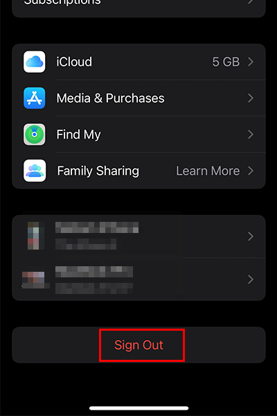 Às vezes, a falha no seu ID Apple também pode levar a esses problemas. Para isso, você pode simplesmente sair do Apple ID e entrar após alguns minutos para concluir o trabalho. Sair do ID Apple redefinirá essas configurações, o que pode ajudar a resolver os problemas se o ID Apple apenas os causar.