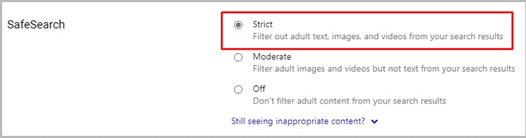 Os mecanismos de pesquisa mais populares oferecem o recurso Pesquisa segura . Usando esse recurso, você pode bloquear determinados conteúdos que incluem mídia violenta e imprópria.