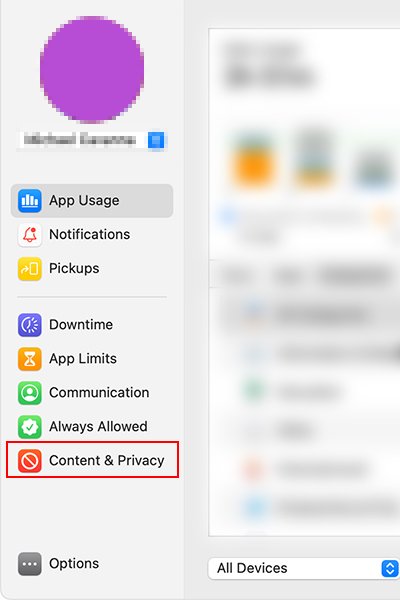 No painel à sua esquerda, selecione Conteúdo e privacidade.