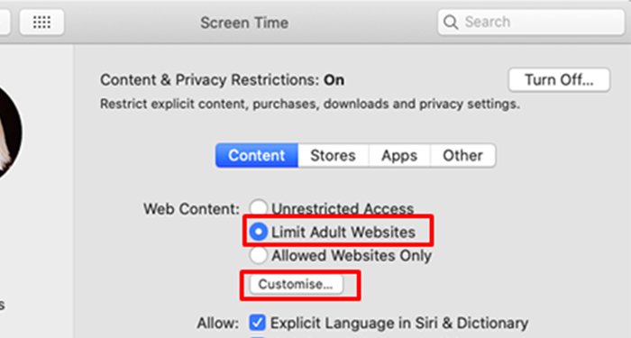 Para usuários de Mac, você pode pesquisar URLs específicos. Esse recurso pode ser útil, pois você pode selecionar os sites que não deseja acessar. Siga estas instruções para limitar sites indesejáveis para o seu Mac:
