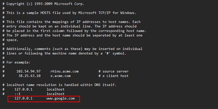 Os usuários visitam um site usando um servidor DNS que seu computador armazena localmente no arquivo HOSTS. Você pode inserir a URL do site que deseja bloquear neste arquivo para desativá-lo. Lembre-se de que você precisa de acesso administrativo para realizar esta ação.