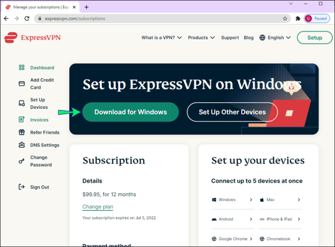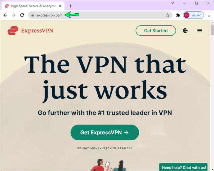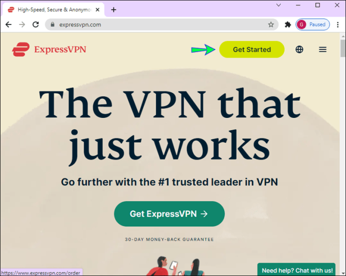 Abra seu navegador favorito e navegue até o site ExpressVPNSelecione”Começar.”