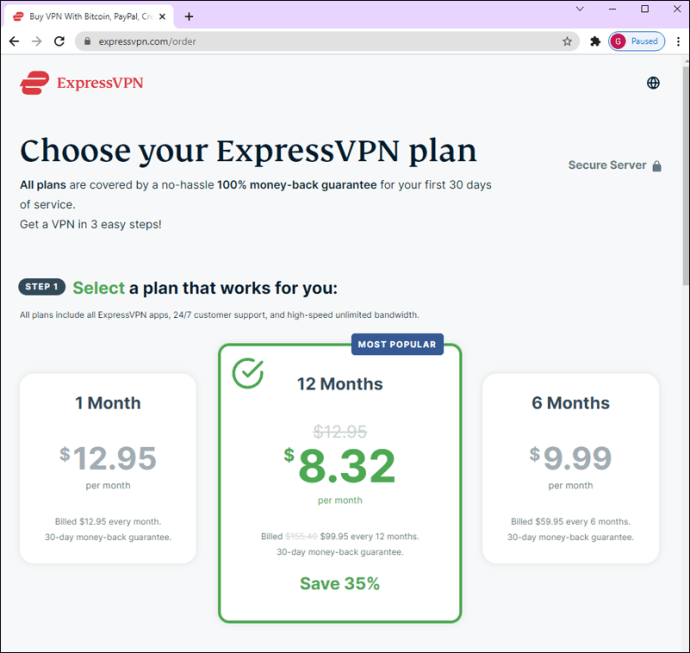 Escolha um plano de compra e coloque suas informações de pagamento.