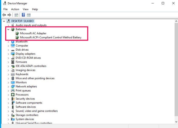 Digite’Device Control Manager’na caixa Cortana/Search Windows e abra o Windows Device Manager. Selecione Batteries e abra o menu. Selecione Microsoft ACPI-Compliant Control Method Battery driver.Clique com o botão direito e selecione Desinstale. Selecione Verificar alterações de hardware no menu superior do Gerenciador de dispositivos. Permita que o Windows verifique e instale o driver novamente.