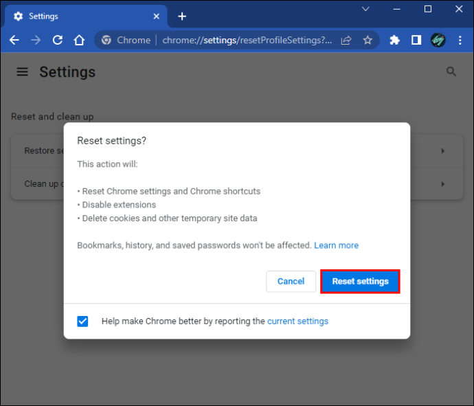 Se nenhuma das soluções discutidas anteriormente remover o Bing com êxito, você deverá redefinir o Chrome completamente. Este processo irá redefinir o navegador para suas configurações padrão. Para redefinir o Chrome: