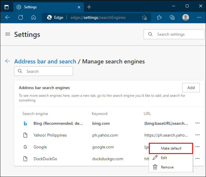 Muitas pessoas também não preferem o Bing como mecanismo de pesquisa. Como o Bing está integrado ao ecossistema da Microsoft, você deve removê-lo do seu computador e navegador.