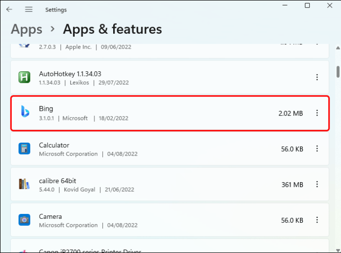 Escolha “Aplicativos”. Isso abrirá a lista de aplicativos.Role até encontrar o Bing ou um aplicativo que você não se lembra de ter instalado.