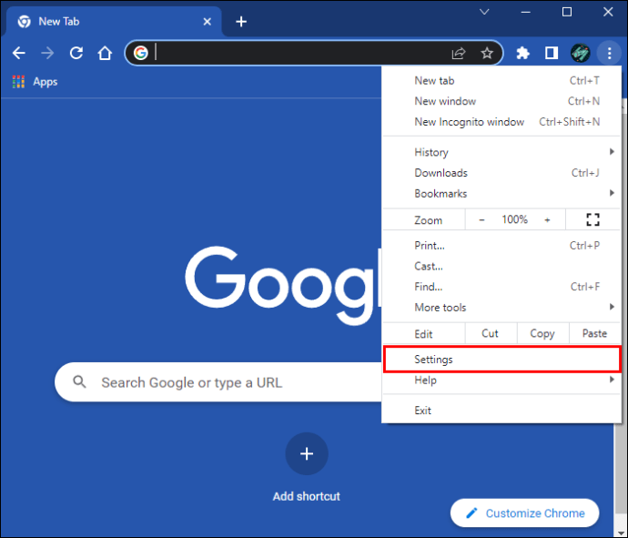 Abra o Google Chrome e pressione o botão de menu no canto superior direito. Estes são os três pontos.Selecione”Configurações.”