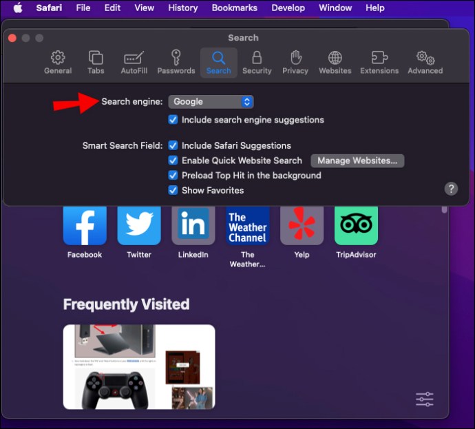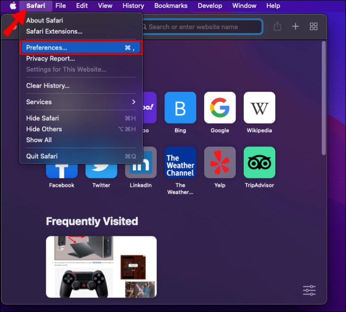 Abra o Safari. Vá para”Safari”e clique em”Preferências.”