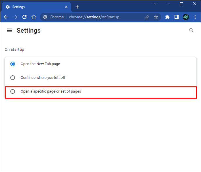 Clique na guia”Na inicialização”e escolha”Abrir uma página específica ou um conjunto de páginas.”