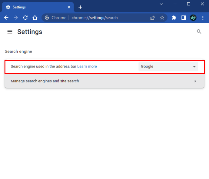 Encontre a configuração”Mecanismo de pesquisa usado na barra de endereço.”