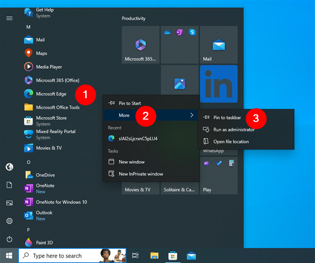 5.1. Adicione um atalho do Edge ao menu Iniciar ou à barra de tarefas do Windows 10