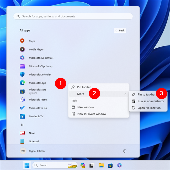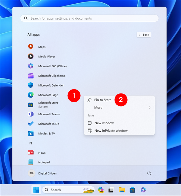 5.2. Adicione um atalho do Edge ao menu Iniciar ou barra de tarefas no Windows 11