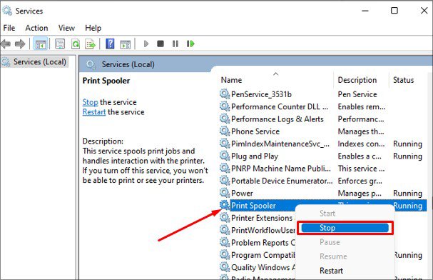 Outra correção que você pode tentar ao enfrentar o erro 0x00000057 é instalar o driver da impressora manualmente. Mas antes de realizar uma instalação manual, você deve remover o driver instalado anteriormente e interromper o serviço de spooler de impressão. Você pode desinstalar facilmente o driver da impressora de suas propriedades.