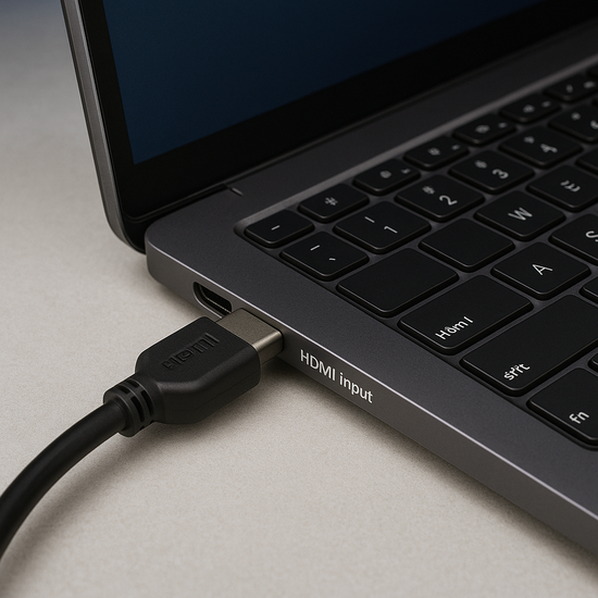 Se o seu laptop oferece suporte nativo à entrada HDMI, a configuração é simples. Primeiro, conecte uma extremidade de um cabo HDMI à porta de saída do seu dispositivo externo (console, câmera ou PC) e conecte a outra extremidade à porta de entrada HDMI do seu laptop.