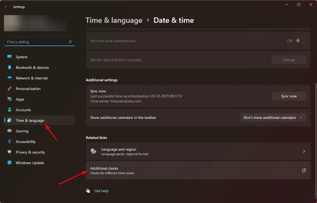 Mostrar vários relógios no Windows 11 Usando Configurações