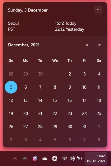 É isso. Com isso, você adicionou vários relógios no Windows 11. Clique na data e hora na barra de tarefas para ver os relógios recém-adicionados. Ele aparecerá no topo do calendário com o nome que você deu.