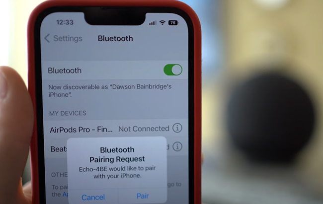 Use o Bluetooth quando quiser reproduzir áudio de aplicativos que não estão vinculados ao Alexa. Este método funciona perfeitamente com Apple Music, YouTube ou qualquer arquivo de música local no seu dispositivo.