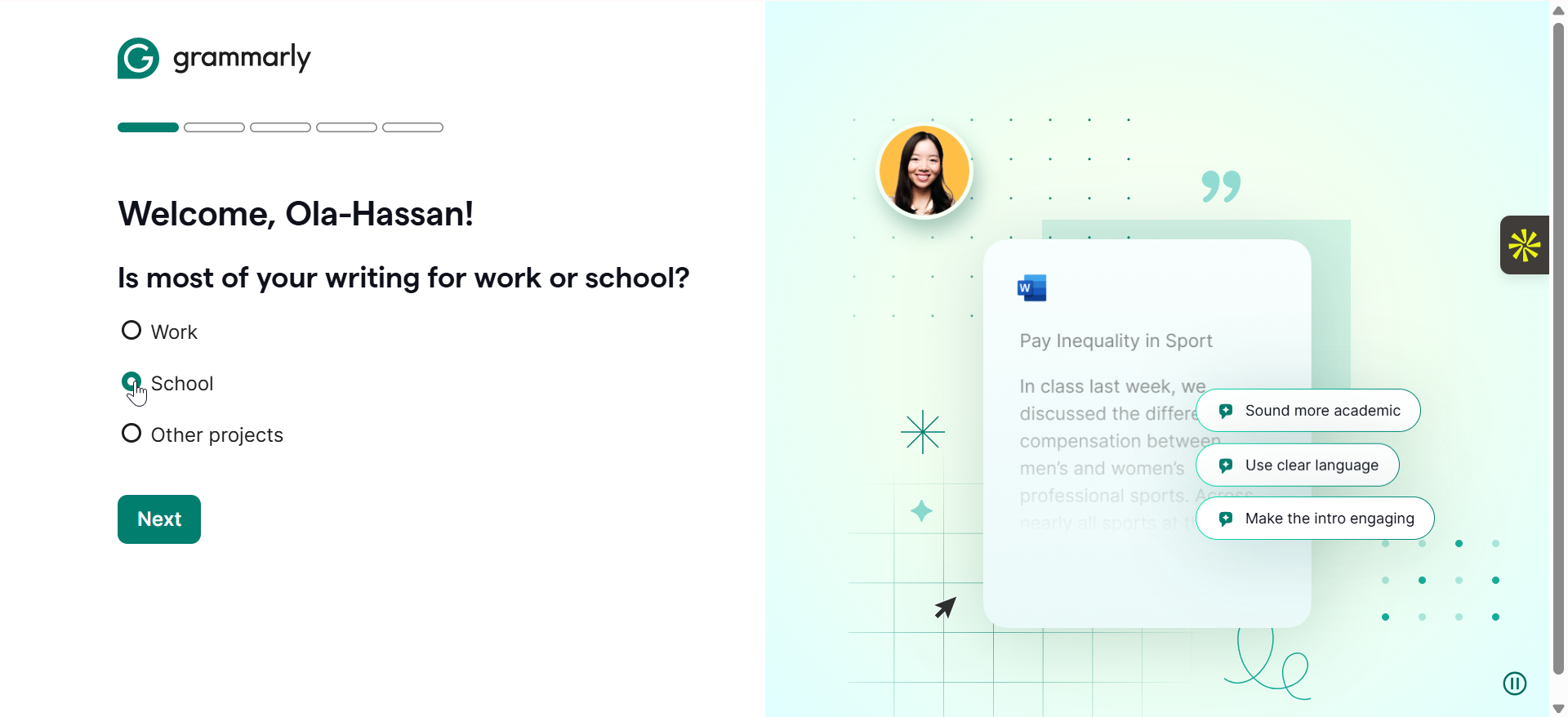 1) Verifique se sua escola oferece acesso Grammarly EDU