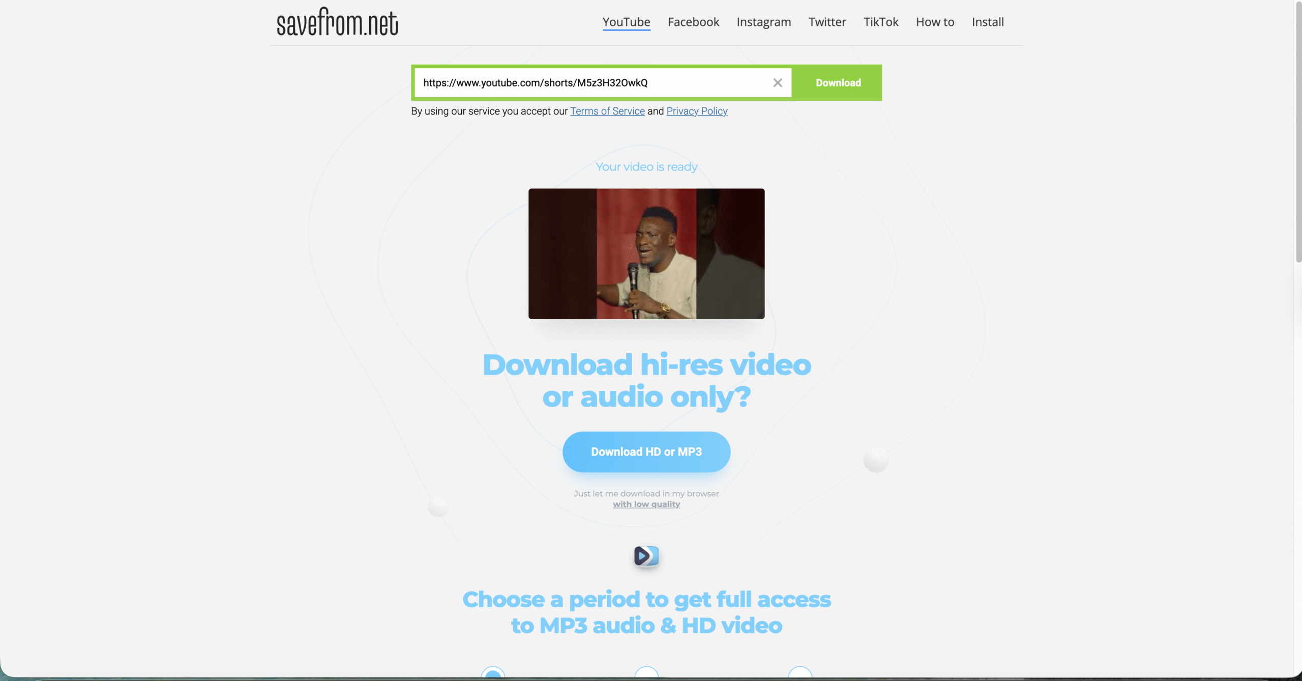SaveFrom é uma ferramenta on-line amplamente reconhecida para baixar vídeos do YouTube. É simples de usar: basta colar o URL do vídeo na caixa SaveFrom, selecionar o formato e a qualidade e clicar no botão de download. SaveFrom suporta uma ampla variedade de formatos de vídeo, incluindo MP4, e oferece uma experiência de download rápida.