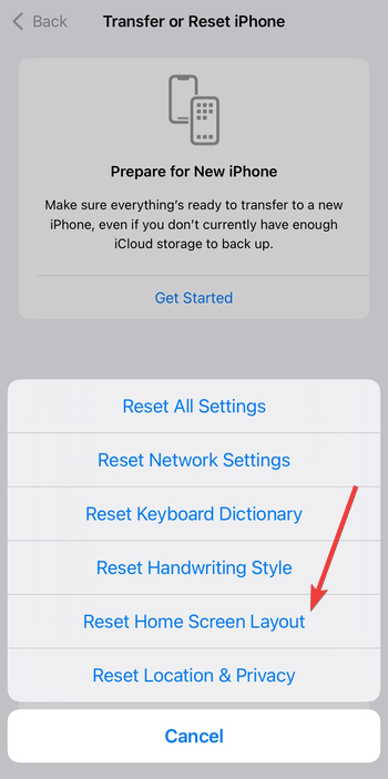 Vá em Ajustes > Geral > Transferir ou redefinir iPhone > Redefinir > Redefinir layout da tela inicial. Se o ícone da App Store estiver oculto em uma pasta, ele retornará ao layout padrão.