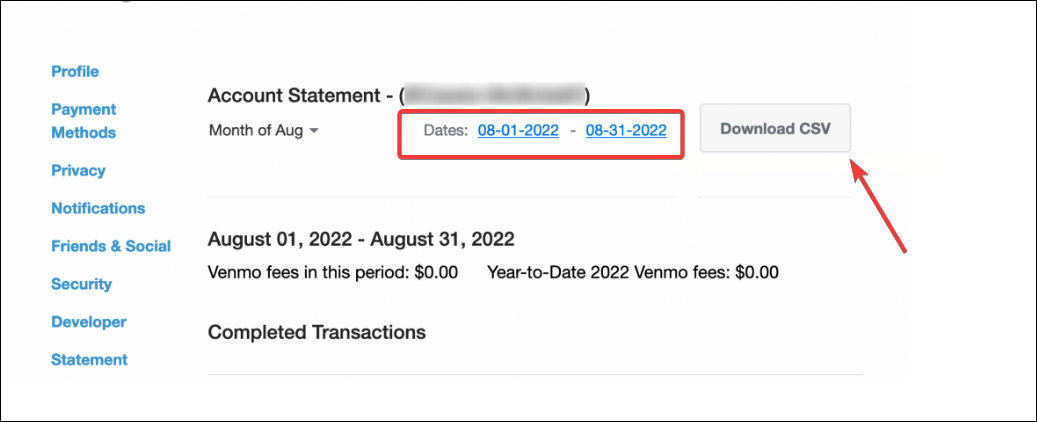 4) Baixe o extrato do perfil comercial da Venmo