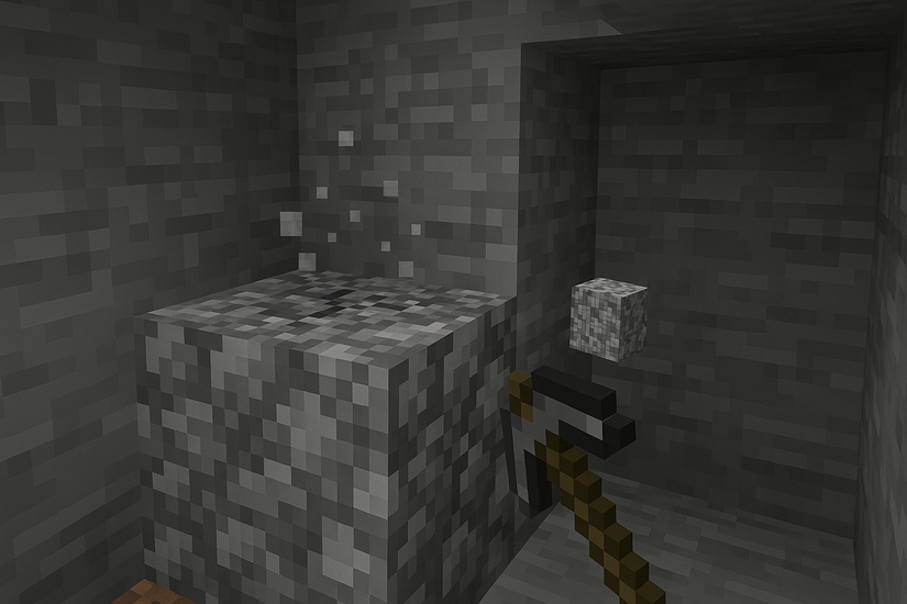 Mine pedras com qualquer picareta para coletar paralelepípedos rapidamente. Você pode encontrá-lo em quase todos os lugares subterrâneos ou ao longo de paredes de penhascos, para que nunca fique sem ele.