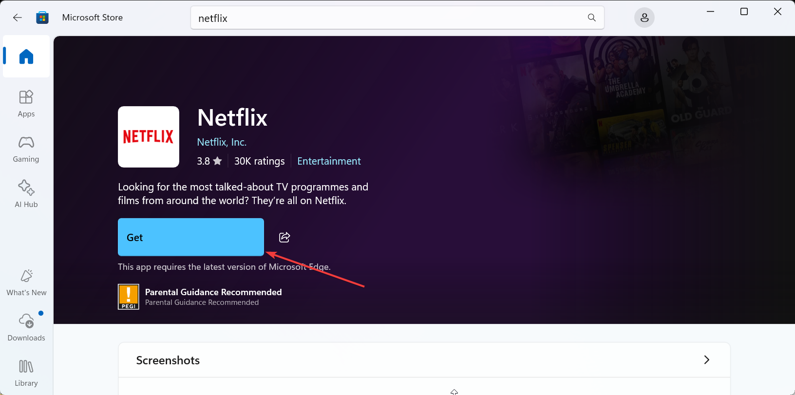 Você pode acessar a Microsoft Store para baixar aplicativos, Netflix ou qualquer uma de suas opções preferidas. Basta pesquisar o nome do aplicativo e clicar no botão Obter e pronto.