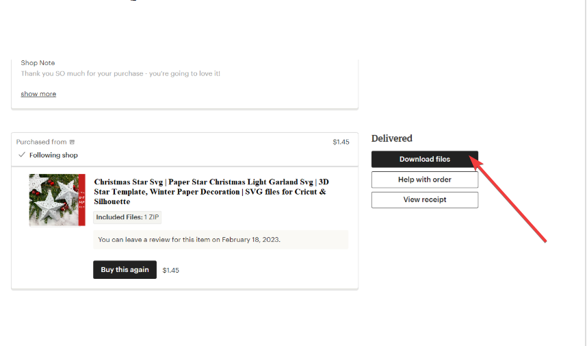 Posso baixar novamente meu SVG mais tarde? Sim. Seus arquivos permanecerão em Compras e avaliações enquanto a listagem permanecer ativa.